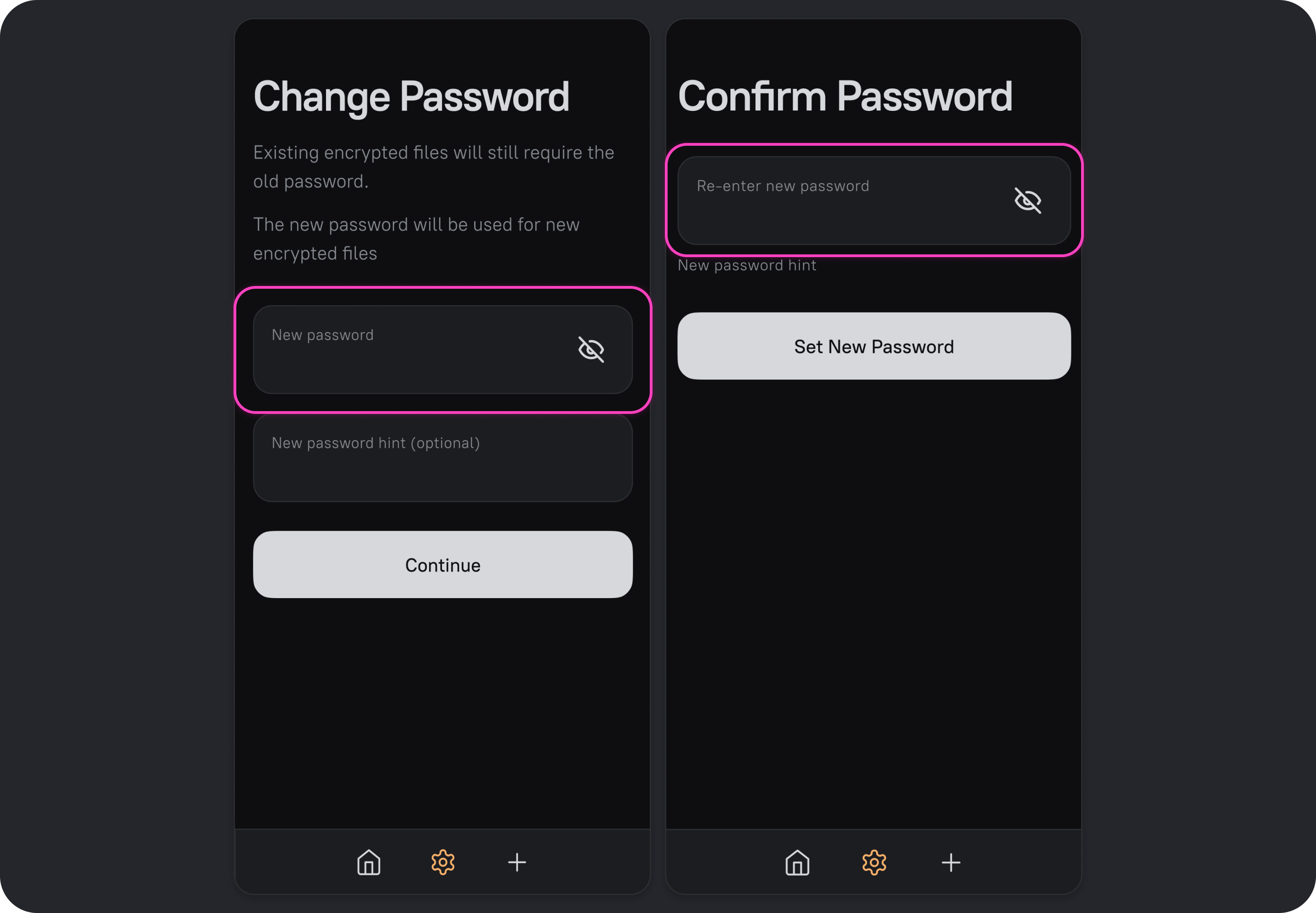 - Set a new password. Optionally, add a hint to help you remember it, and tap Continue.