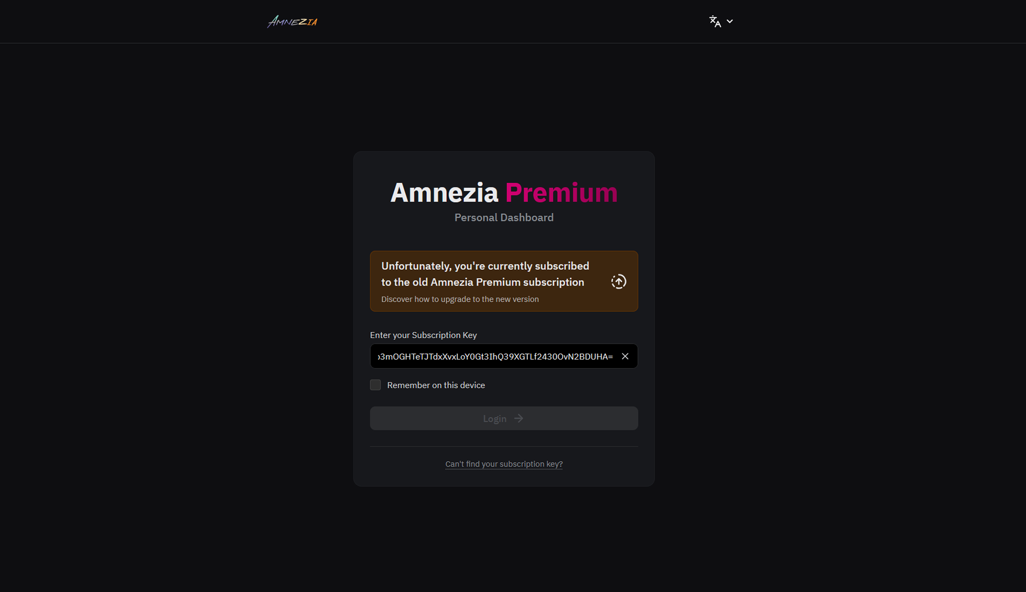 If you previously purchased an Amnezia VPN subscription using multiple keys: