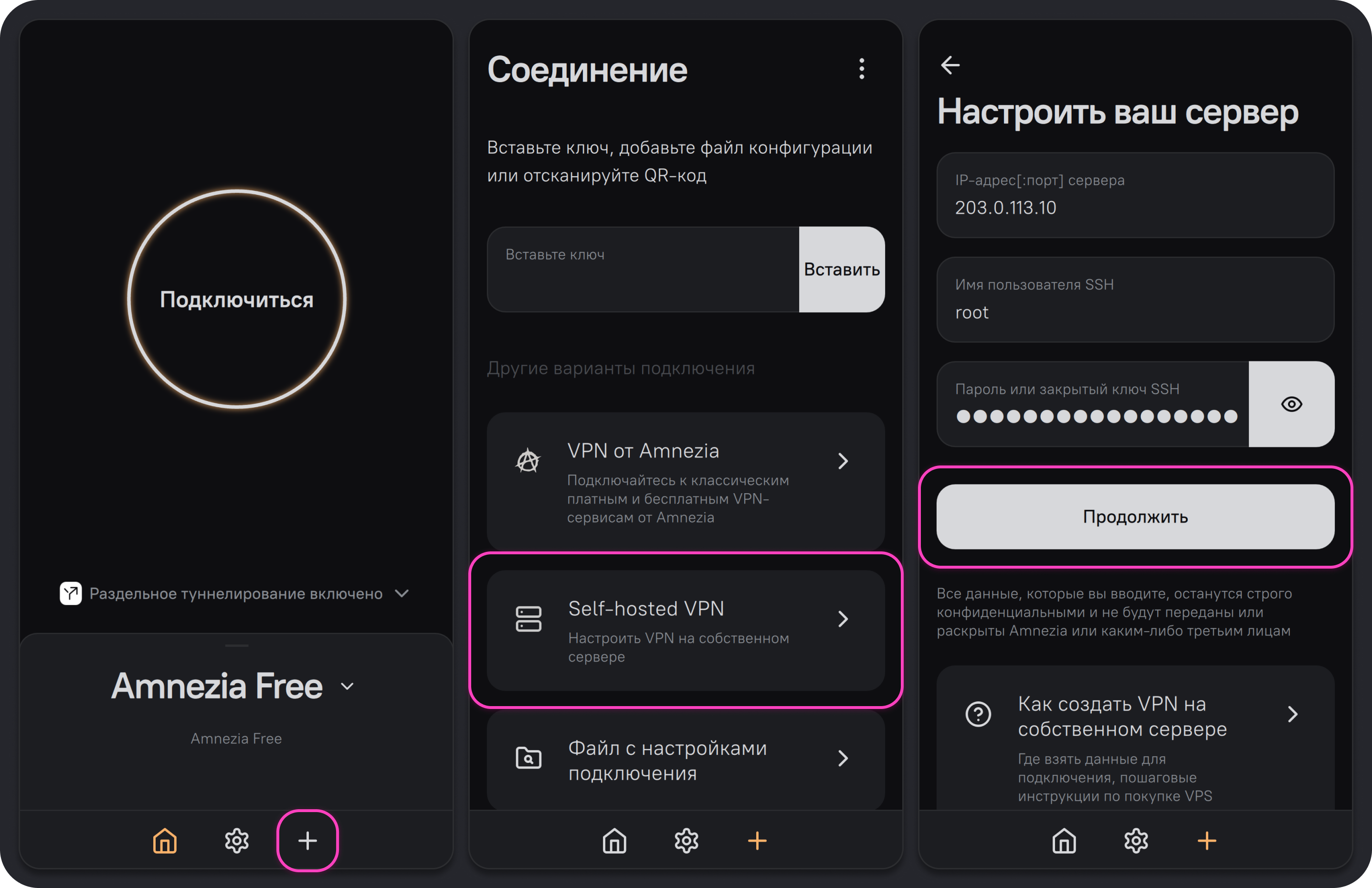 Эта инструкция описывает процесс установки VPN на собственный или арендованный сервер Linux с помощью приложения AmneziaVPN — без ручного ввода команд и работы в терминале.