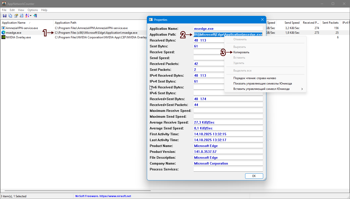 AppNetworkCounter отобразит все процессы, которые в настоящий момент выходят в интернет, а также покажет путь к файлу, который можно добавить в раздельное туннелирование.
